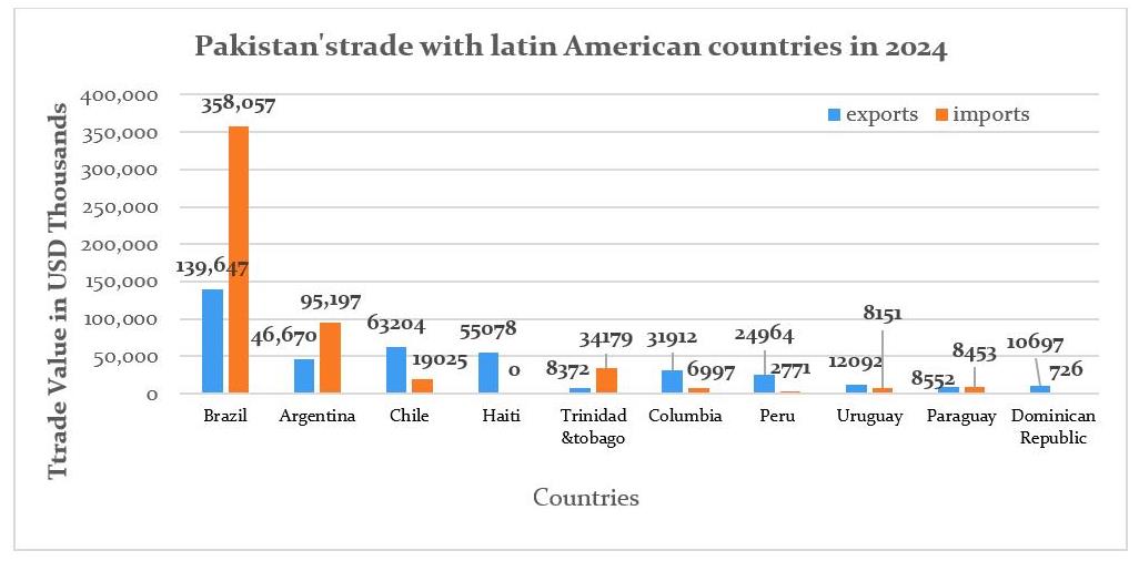Economically, while there are signs of improvement in trade, Pakistan’s engagement with Latin America remains unsatisfactory, narrowly focused, and import-driven. The lack of diversification in export offerings, bureaucratic delays in formalising trade agreements like the PTA or FTA with MERCOSUR, and weakness in aligning with market demands reveal deeper issues in Pakistan’s external economic strategy. This strategic neglect is primarily underscored by a lack of awareness about the Latin American market, leaving it untapped. In the evolving world order characterised by the decline of unipolarity, the emergence of multipolarity, geopolitical competition, and trade wars among major powers such as China and the USA, there is an increasing need for international partnerships to explore new options and reduce dependence on conflicting powers. Hence, Latin America should not remain a missed opportunity but be repositioned as an essential component of Pakistan's market diversification and South-South cooperation agenda. To that end, a “Pivot to Latin America' policy may be required, focusing on developing stronger diplomatic, trade, and defense ties with the region.