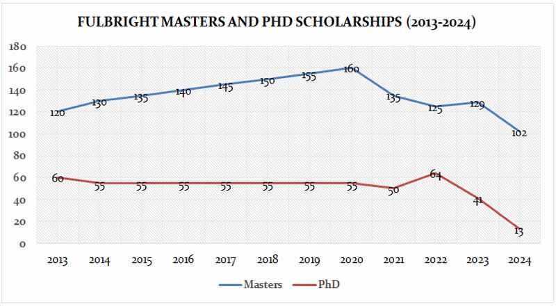 The Fulbright Scholarship, often hailed as a beacon of academic excellence and international cooperation, has long been a cornerstone of US cultural diplomacy. The scholarship is based on comprehensive financial support from the US that covers all educational and living expenses. Since its inception in 1946, the program has awarded scholarships to over 370,000 individuals across 160 countries, including Pakistan. This insight critically examines the past decade of Fulbright scholarships in Pakistan.