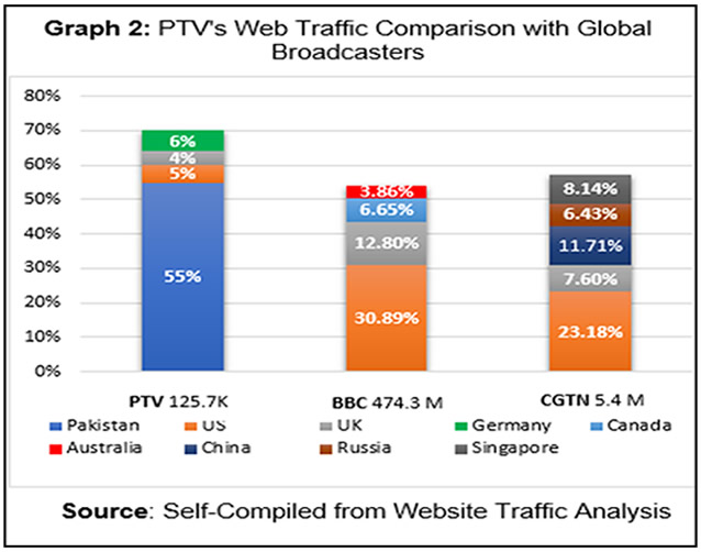 In terms of digital engagement, globally, broadcasters like BBC, TRT, and CGTN have adopted a digital-first approach, using strong multi-platform strategies and mobile-friendly content, curated for online audience. PTV can follow this model to revamp its digital strategy and expand its outreach.